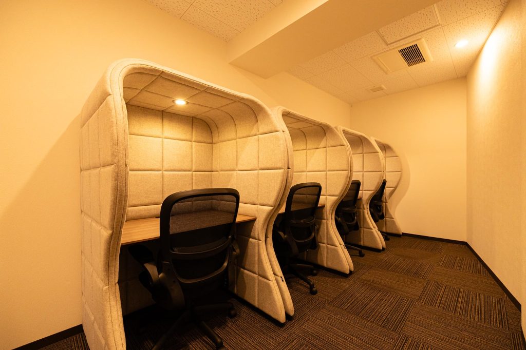 よりコストを抑えたい層には、月額3.8万円の専用ブース席も。空間デザインに定評のあるDRAFT社の製品を採用しており、まるで繭の中にいるような静けさの中で、作業が捗ります。