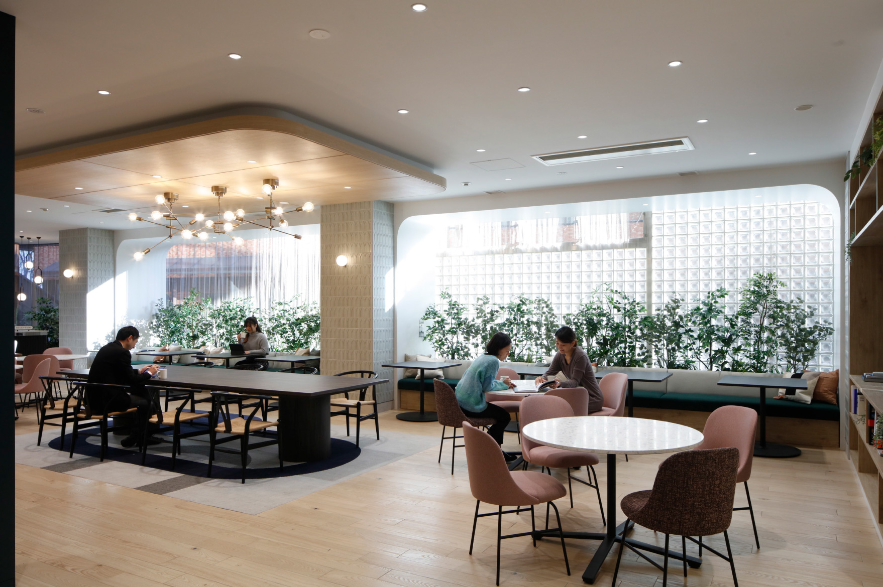 利用者同士の交流と集中を両立する共用エリアを完備。