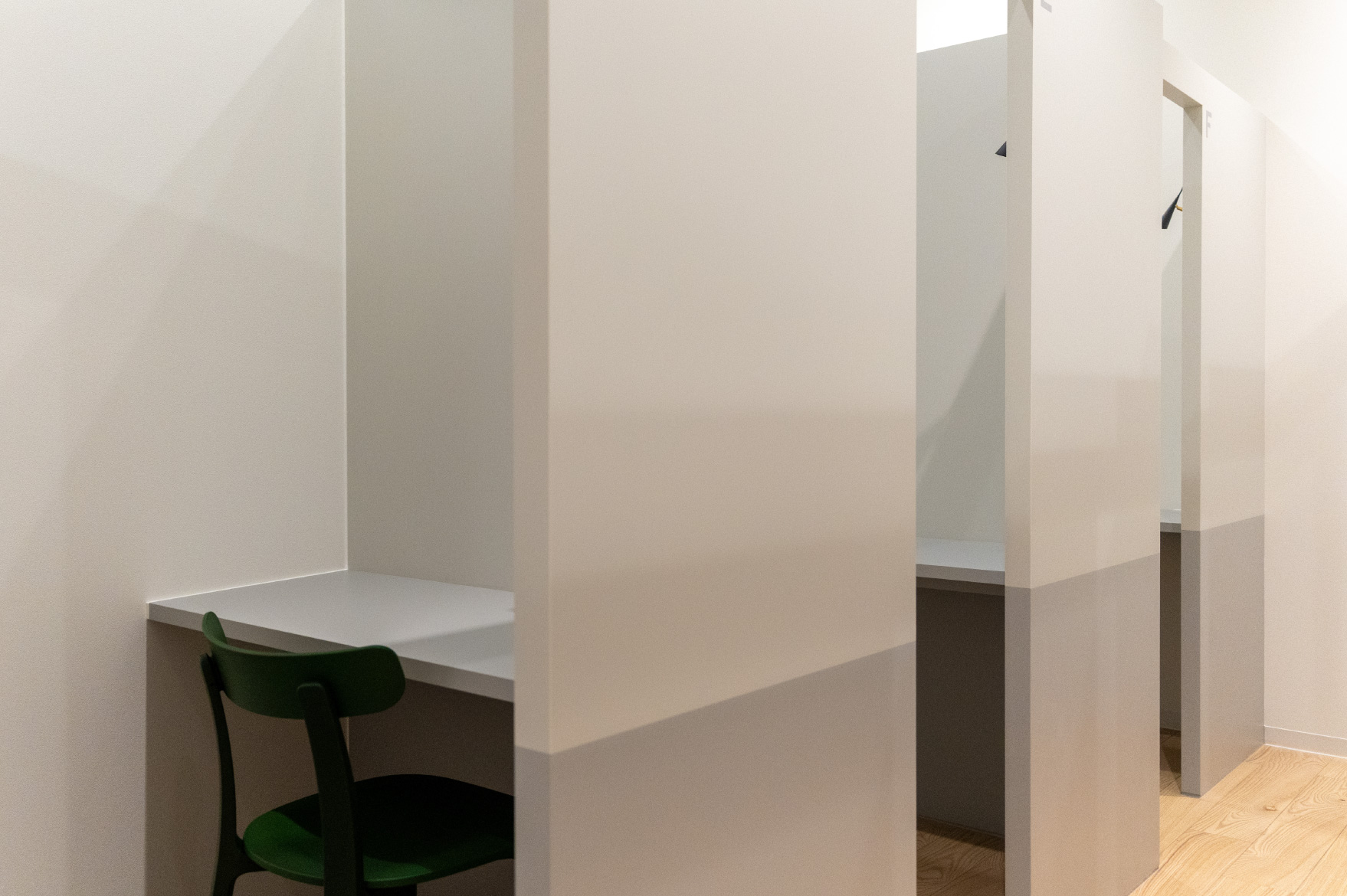 音と創造に没頭(FLOW)できるシェアオフィス。 防音個室は、楽器演奏、DTM(音楽制作)、配信、稽古など、音を出す仕事をするクリエイターやアーティストのために設計された空間。 防音施工技術により、-65㏈の高い遮音性を実現しています。